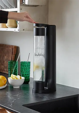 The modern technology of bubliq’s patented Air-Charge™ enables ease of use. Through three simple steps of placing the cap on the bottle, inserting the bottle onto the stand and pressing the top, you can have sparkling drinks at your fingertips in seconds. No need to struggle with screwing and bending bottles into place.